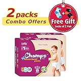 Premium Champs High Absorbent Premium Pant Style Diaper (Pack of 2)(Free 2-Pair Socks)| Premium Pant Diapers | Premium Diapers | Premium Baby Diapers | anti-rash and anti-bacterial diaper | (Medium, 56) …